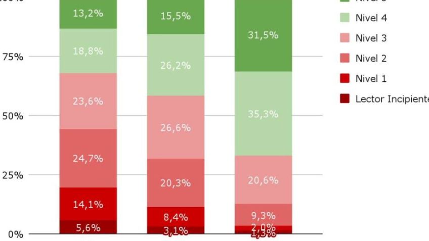 1. La mitad de los chicos no entiende lo que lee, y 1 de cada 5 chicos de nivel socioeconómico bajo son analfabetos. Según los resultados de las pruebas Aprender Alfabetización 2024, de los alumnos de 3er grado el 11,6% recién se está iniciando en la lectura de textos simples. Sólo el 18,7% comprenden textos complejos de forma literal, inferencial y reflexiva y establecen inferencias complejas.