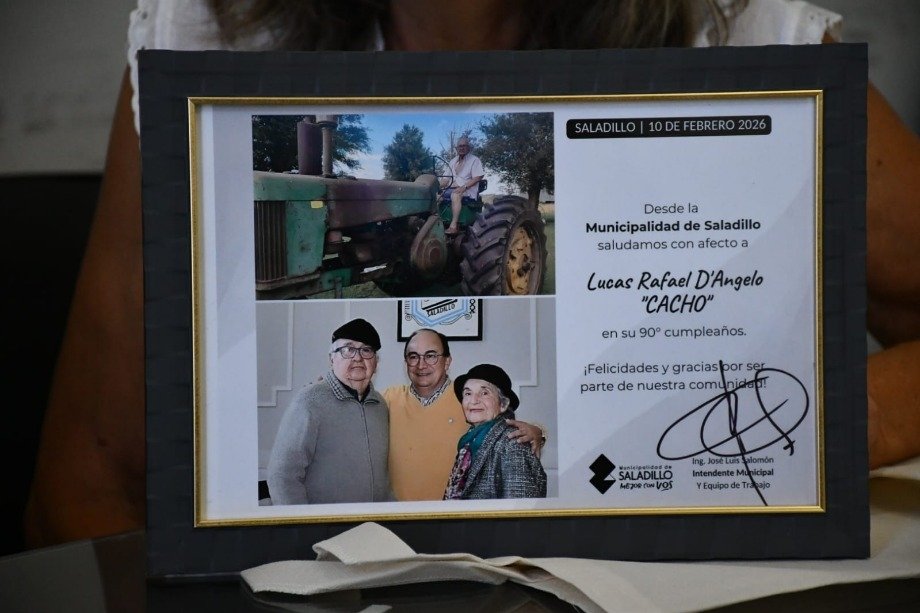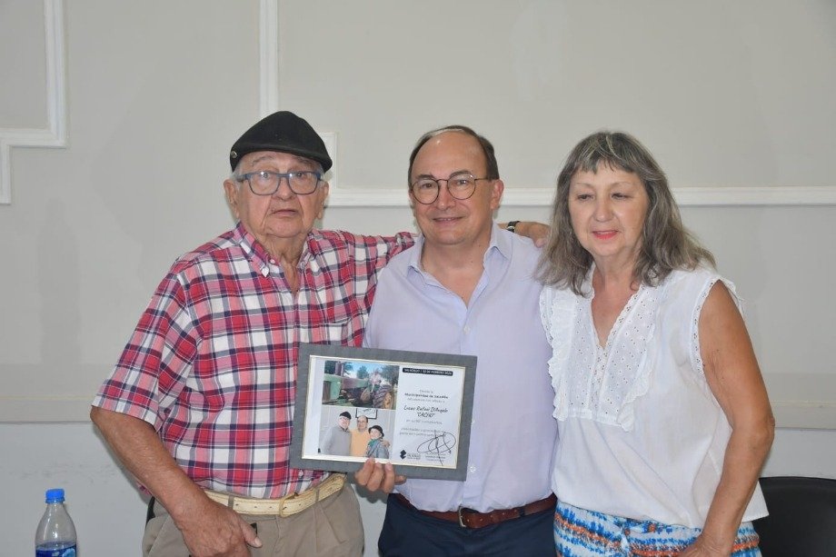 Con motivo de haber celebrado días pasados sus 90 años de edad, Intendente Municipal Ing. José Luis Salomón recibió a Lucas Rafael Cacho Dangelo para saludarlo por esta celebración y hacerle entrega de un presente en representación de toda la comunidad.