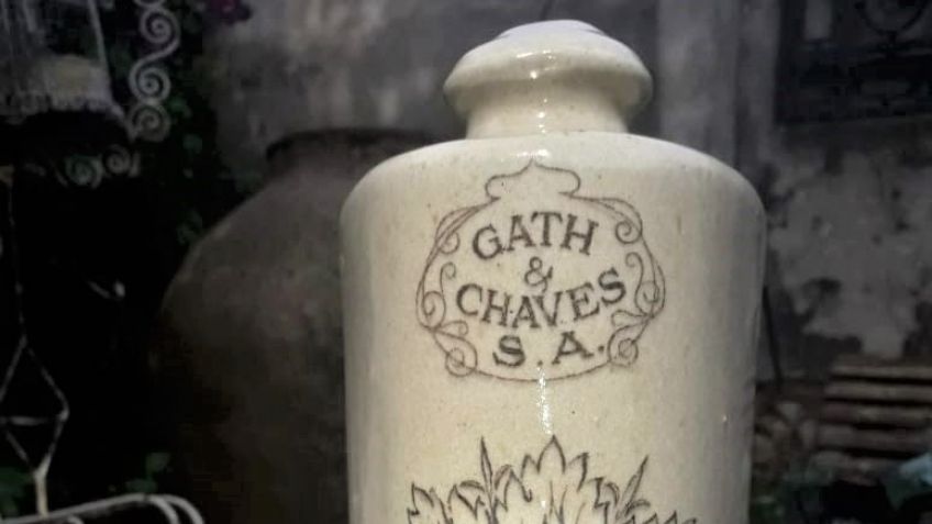 La botella de la imagen tiene el sello de una empresa líder de principios del 1900, una casa de comercio, la elegante casa "Gath & Cháves", que como presente y publicidad para sus clientes, ofrecía un calientapiés de regalo.