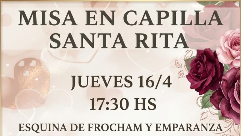 Misa en la Capilla Santa Rita, el jueves 16 de abril, a las 17:30, en avenida Ibáñez Frocham y Emparanza.