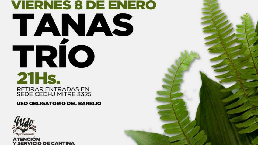 Este viernes 8 de enero a las 21 horas en el patio de la Municipalidad en el marco del programa Música en el Jardín del Palacio, se presentará el trío vocal e instrumental, de música de raíz folclórica latinoamericana "Tanas Trío" conformado por Gabriela Sameghini, Gabriela Trofino y Milena Tommasini.