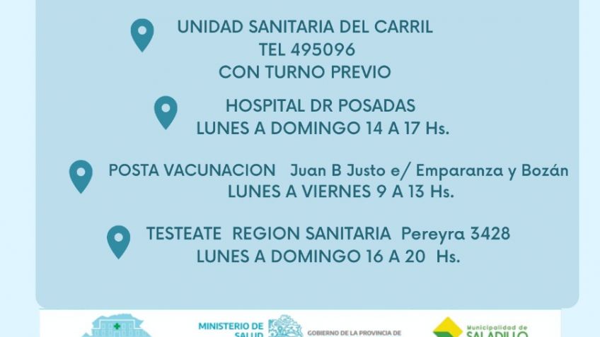 TESTEATE REGIÓN SANITARIA | Pereyra 3428 | Lunes a Domingo 16 a 20Hs.