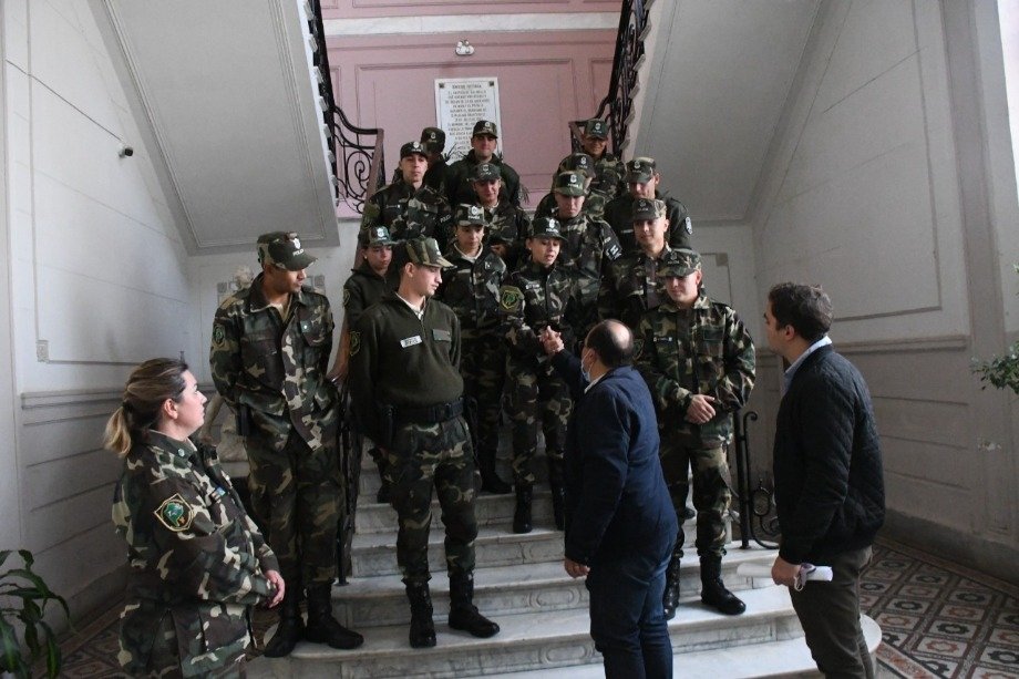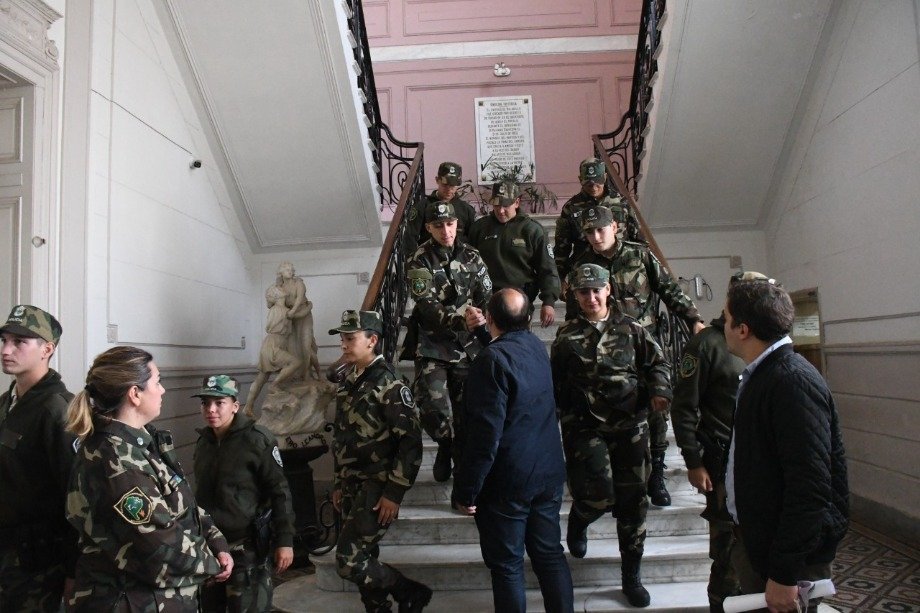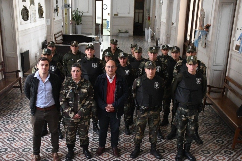 En el municipio local, el Intendente Municipal Ing. José Luis Salomón, acompañado por el Subsecretario de Seguridad Dr. Gonzalo Gallego, recibió a la Jefa del CPR local Lorena Vaquero y los 15 nuevos efectivos recientemente graduados que ya comenzaron a prestar su servicio en nuestra ciudad.