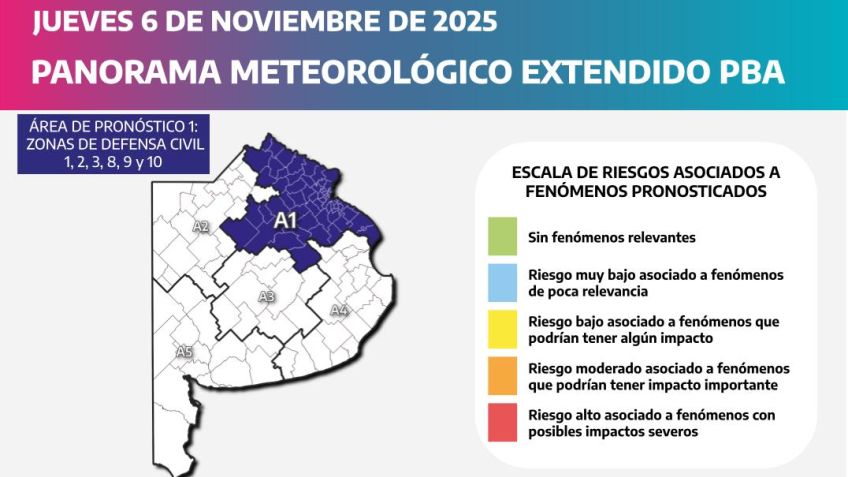Actualmente se están empezando a registrar algunas lluvias aisladas débiles sobre el noroeste de la Provincia. Para el día de hoy se esperan lluvias y algunas tormentas aisladas en toda la franja oeste de PBA, especialmente sobre el noroeste durante horas de la tarde y noche. Viernes con probabilidad de lluvias mayormente débiles o moderadas sobre la provincia de forma intermitente a lo largo del día, en especial sobre la franja norte. No se esperan acumulados significativos. Sábado con lluvias aisladas durante la tarde, en especial sobre centro y franja sur de PBA. Domingo sin fenómenos.
