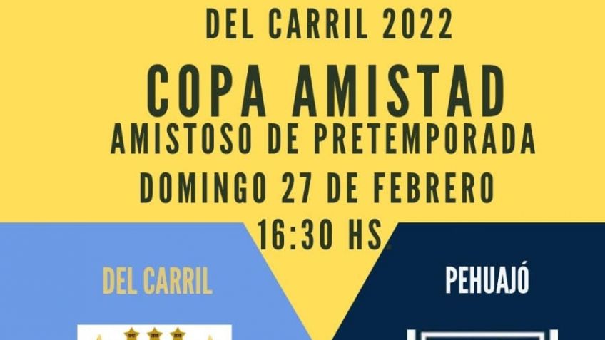 En el estadio Joaquín Benítez de Defensores de Del Carril se disputará un encuentro amistoso de fútbol entre el equipo local y Mones Cazón de la localidad de Pehuajó. Será el domingo 27 desde las 16:30. Previamente habrá otras actividades (ver imágenes)