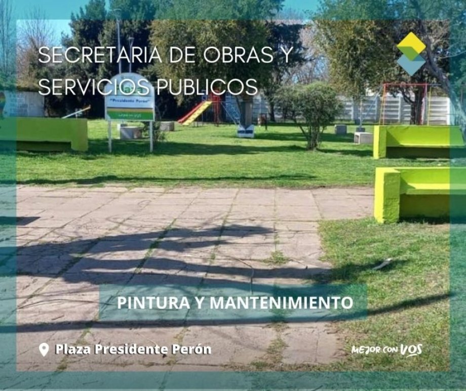 La cuadrilla de pintura municipal perteneciente a la secretaría de Obras y Servicios Públicos se encuentra realizando trabajos de pintura y mantenimiento en dicha plaza.