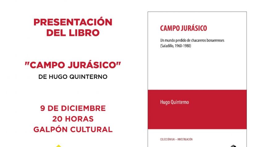El jueves 9 de diciembre a las 20 horas en el Galpón Cultural tendrá lugar la presentación del libro "Campo Jurásico" de Hugo Quinterno. Este libro es el resultado de una investigación sobre el universo chacarero de nuestra ciudad, centrada entre los años 1960-1980, cuyo objetivo es el análisis de las relaciones económicas, productivas, sociales y culturales que allí se desarrollaban.