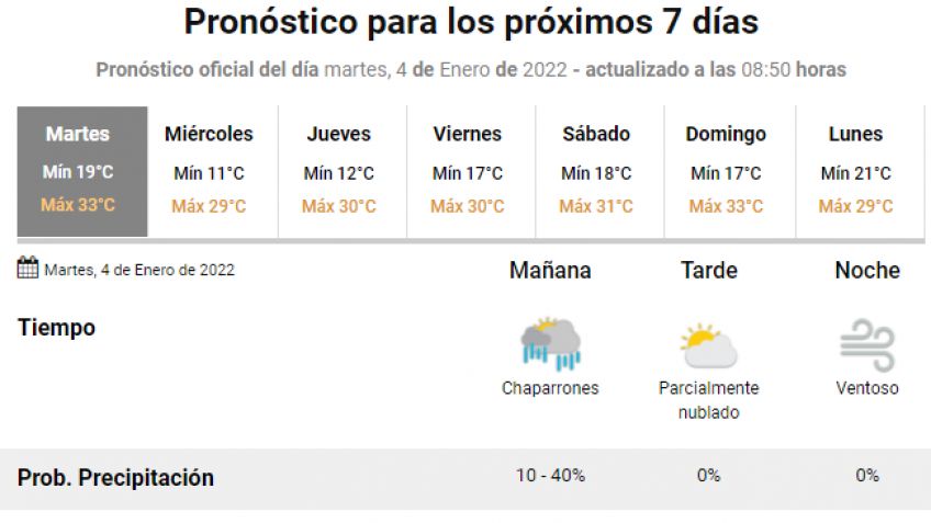 El Servicio Meteorológico Nacional (SMN) pronostica para las próximas horas, para nuestra región, algunos chaparrones, moderado descenso de temperatura y vientos.