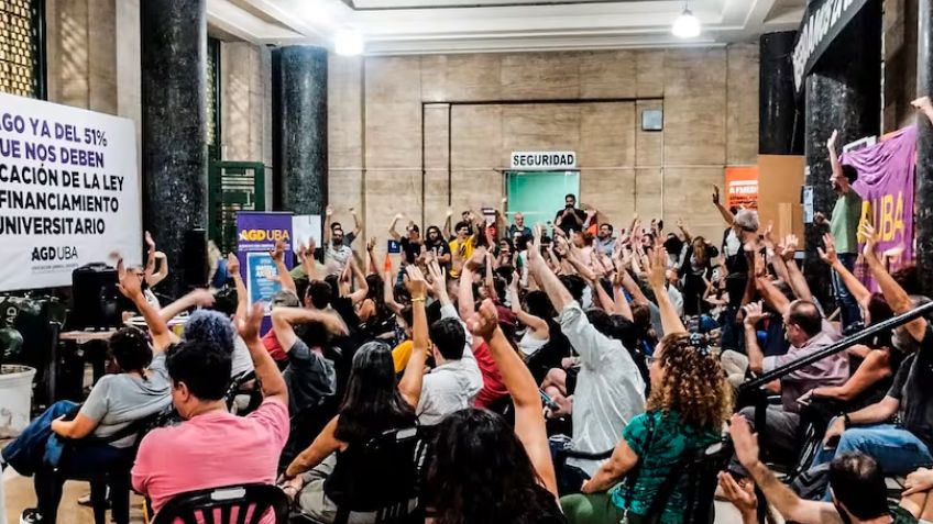 "No volveremos a las aulas hasta que nos paguen el 51 por ciento que nos deben y que se cumpla le ley vigente", advirtió el personal aglutinado en la Asociación Gremial De Docentes (AGD-UBA), que durante una asamblea anunció un plan de lucha como respuesta a la grave situación que atraviesa esa casa de estudios producto del ajuste aplicado por el gobierno de Javier Milei.