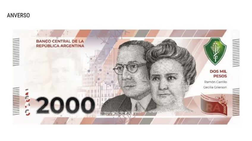 El Banco Central de la República Argentina (BCRA) aprobó este jueves la emisión de un nuevo billete de $2.000, que llevará imágenes de la Dra. Cecilia Grierson, del Dr. Ramón Carrillo y también del Instituto Malbrán. Según precisaron desde el BCRA en un comunicado, la elección, tanto de estos personajes históricos como del organismo público, tuvo como fin "conmemorar el desarrollo de la ciencia y de la medicina en la Argentina".