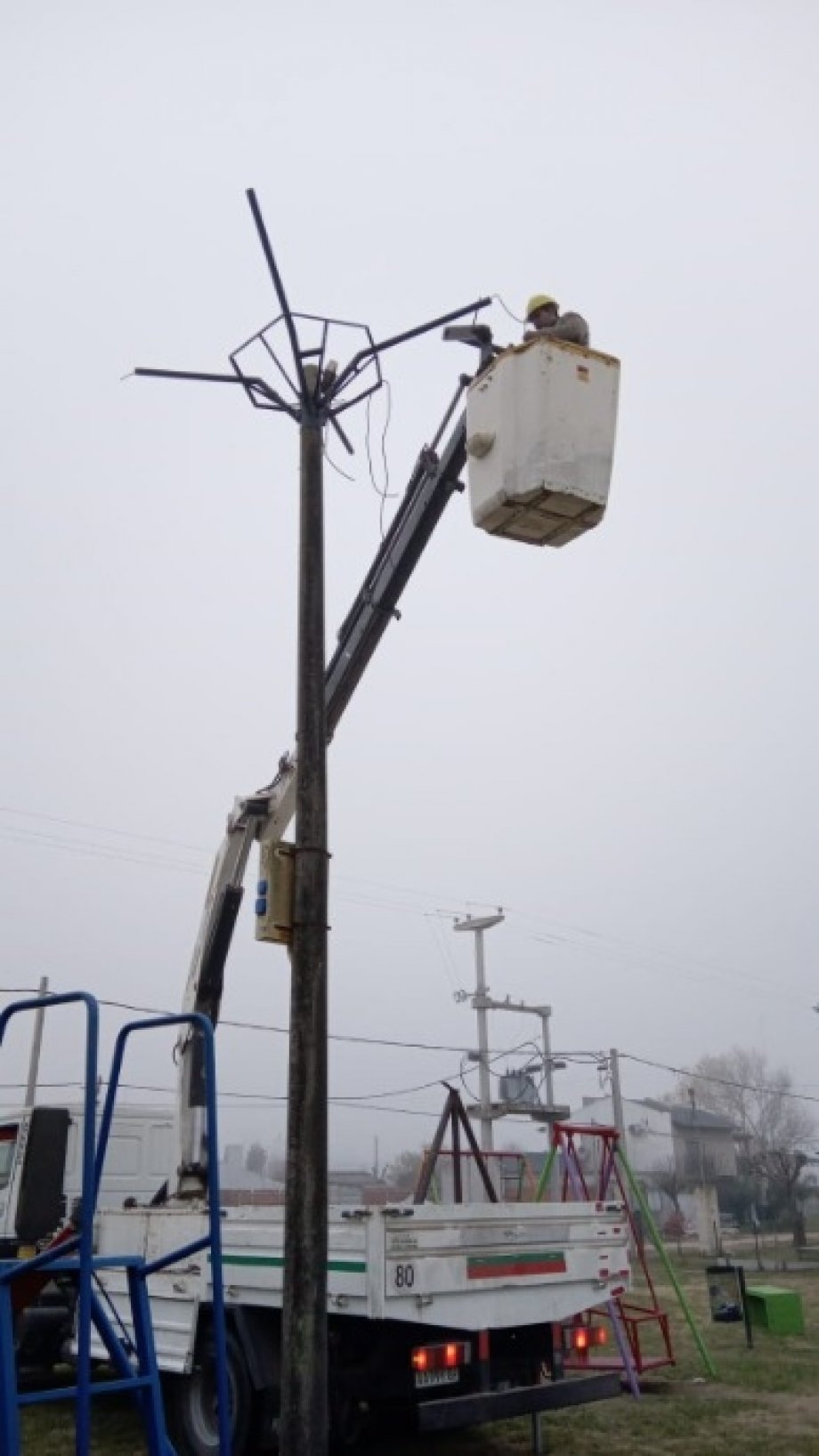 La cuadrilla eléctrica municipal perteneciente a la Subsecretaría de Servicios Públicos, realizó el recambio lumínico en el parque recreativo de dicha localidad; se cambiaron reflectores de sodio que se encontraban en mal estado y muchos fuera de funcionamiento, por artefactos led de 100w. Para ello se fabricó un nuevo soporte mejorando su anclaje.