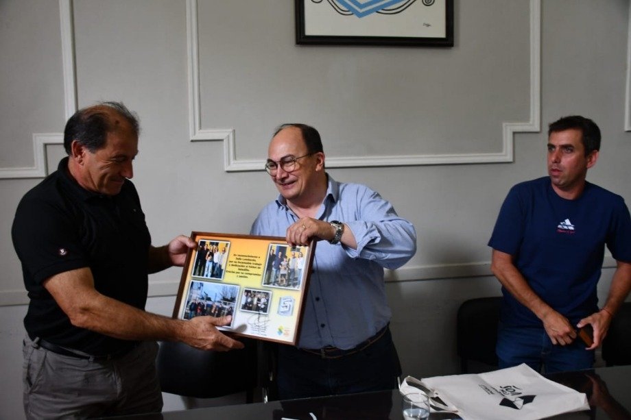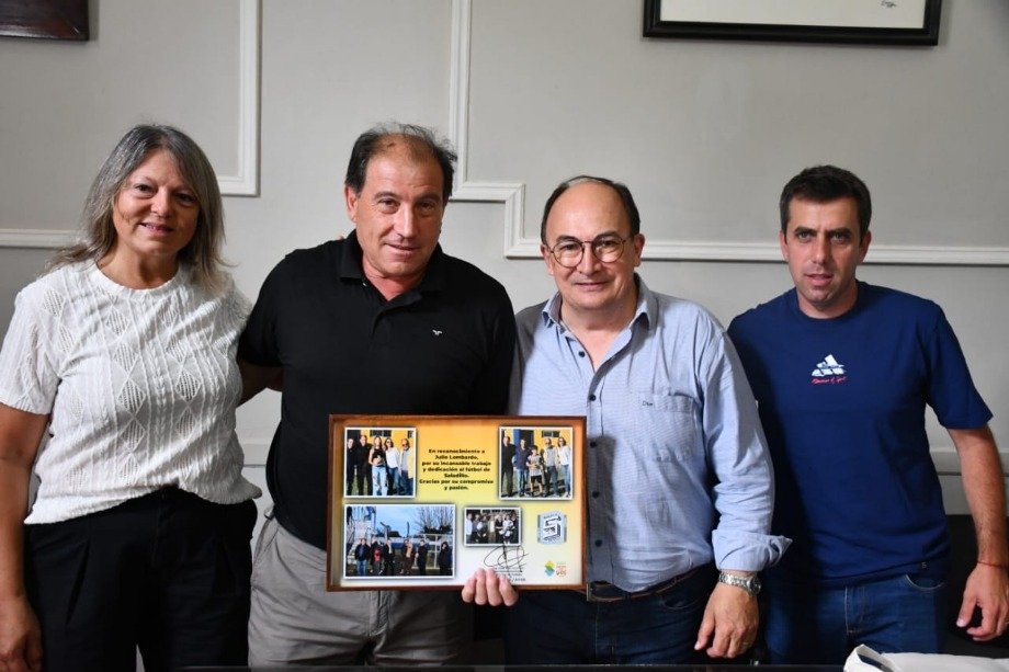 El Intendente Salomón junto con la Secretaria de Gobierno y el Subsecretario de Deportes Nicolás Tosca hizo entrega de un reconocimiento a Julio Lombardo por su trayectoria y logros institucionales durante estos 12 años en la Liga de Fútbol de Saladillo.