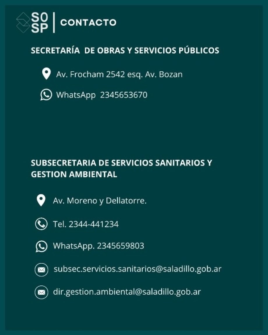 Mail subsec.servicios.sanitarios@saladillo.gob.ar