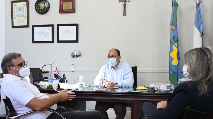 El Intendente Municipal Ing. José Luis Salomón acompañado por la Secretaria de Gobierno Prof. Viviana Rodríguez recibió en su despacho al Diputado Provincial Walter Abarca.