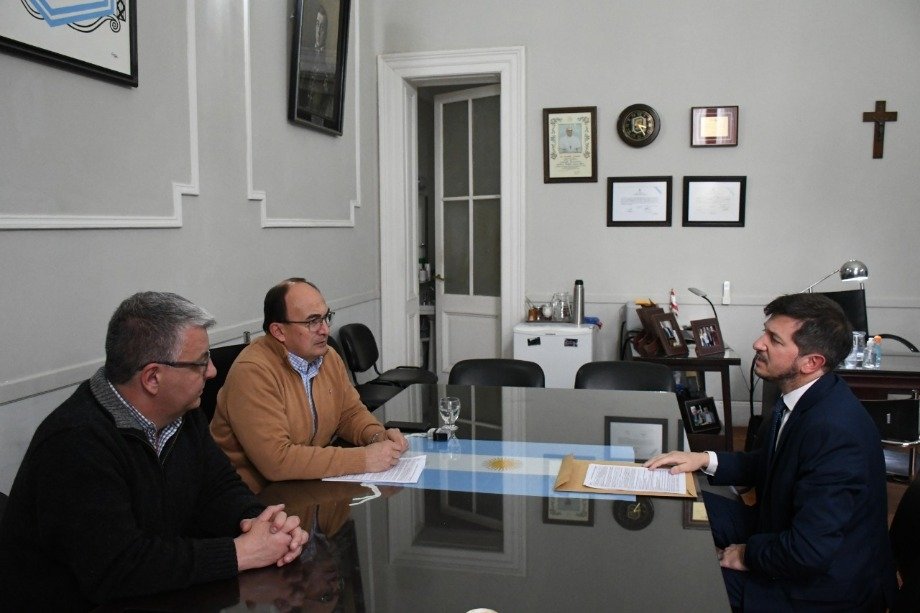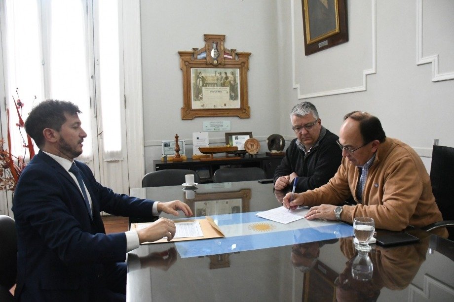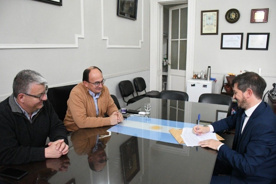 El Intendente Salomón acompañado por el Secretario de Hacienda, Gustavo Ramundo, recibió en su despacho a Guillermo Vega, Gerente de la sucursal local del banco de la provincia de Buenos Aires. El motivo del encuentro fue realizar la firma del convenio correspondiente con esta sucursal como trámite necesario para la continuidad de la gestión del trámite de 90 millones de pesos otorgado al municipio local para la compra de maquinaria y equipamiento vial. Como se recordará, durante el transcurso de la semana pasada, el Intendente Salomón firmó el convenio con el Titular del Banco de la Provincia de Buenos Aires, Juan Miguel Cuattromo.