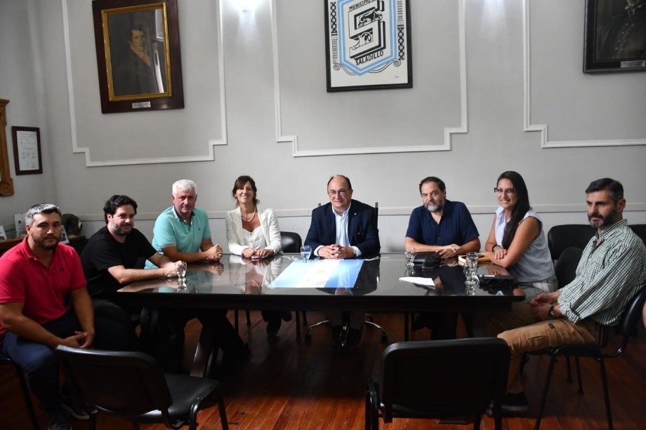 El Intendente Municipal Ing. José Luis Salomón junto con la Secretaria de Desarrollo Local Prof. Victoria Irañeta y Secretarios del equipo de gobierno de gestión local recibió y mantuvo una reunión de trabajo con el Director Provincial de Vinculación e Integración Regional Oscar Minteguia y colaboradores para intercambiar ideas y aspectos sobre las propuestas Productivas del distrito de Saladillo, especialmente las vinculadas con la elaboración de alimentos de pequeños y medianos productores.