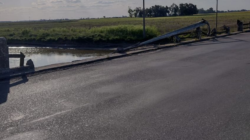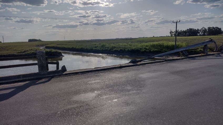 Hace meses que está destruido y años que no se repara. Sobre la ruta provincial 51 que también está en un estado lamentable, además, marca uno de los límites entre los partidos de 25 de Mayo y nuestro distrito. Tiempo atrás como consecuencia de un hecho vial, quedó en el estado en que se muestra. No hay columnas ni guard rail que evite la caída de cualquier vehículo al vacío. Una deuda del gobierno provincial. Un peligro para quienes transitan por el lugar. Lamentable.