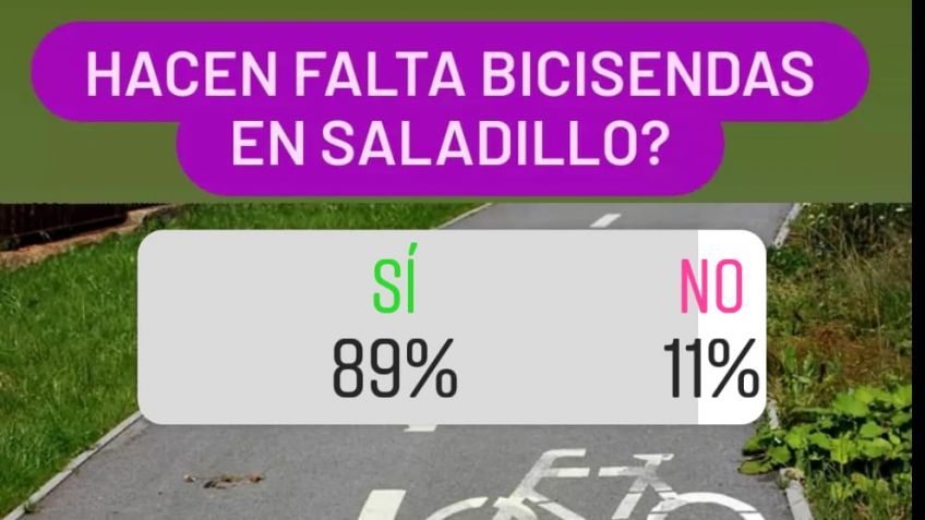 Una de nuestras encuestas en Instagram @lasintesisok, arrojó como resultado, que el 89 por ciento de los saladillenses, aseguran que, en Saladillo, hace falta bicisendas; mientas que el 11 por ciento, se inclinó por el NO. El resultado obtenido es de un total de 175 personas que participaron de la misma.