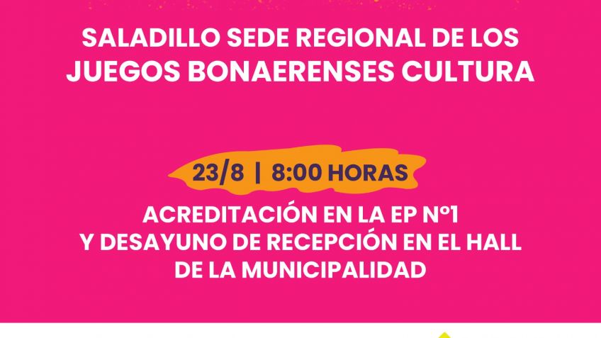 La Subsecretaría de Cultura, Educación y DD.HH de la Municipalidad de Saladillo informa que este próximo 23 de agosto Saladillo será sede regional de los Juegos Bonaerenses Cultura 2023.