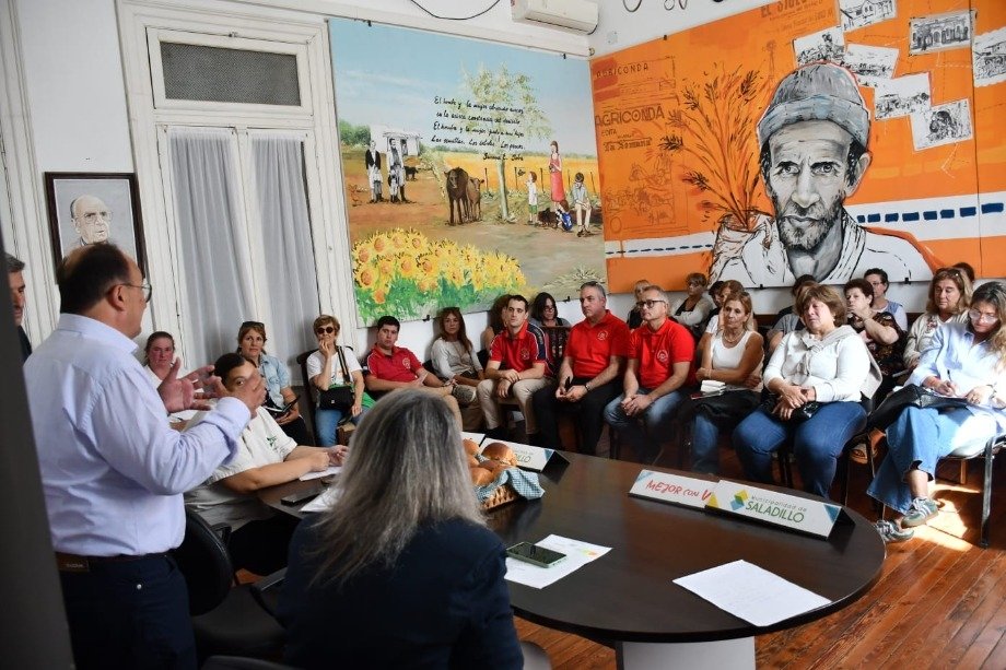 El Intendente Municipal Ing. José Luis Salomón concurrió a saludar a los representantes de todas las instituciones que forman parte de la 5ta Edición de la Fiesta de la Galleta de Piso cuando se desarrollaba una reunión en el Salón Sesquicentenario organizada por la Secretaria de Gobierno.