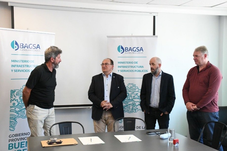Este jueves 9 de noviembre se firmó el contrato para dar comienzo a la obra de la planta reductora de presión en la localidad de Del Carril y que también dara servicio de gas natural a la localidad de Polvaredas. Al acto en la sede central de BAGSA de La Plata asistieron, el intendente de Saladillo Ing. José Luis Salomón y el diputado electo Ricardo Lissalde que fueron recibidos por el presidente de BAGSA, lic. Pablo Pérez. La firma adjudicada es la empresa VTS Constructora. La obra tiene un plazo de 420 días y un monto inicial de 730 millones. En las fotos: Guillermo Candia, Francisco Cabrera, intendente Salomón, Lic. Pablo Pérez y el escribano Ricardo Lissalde.