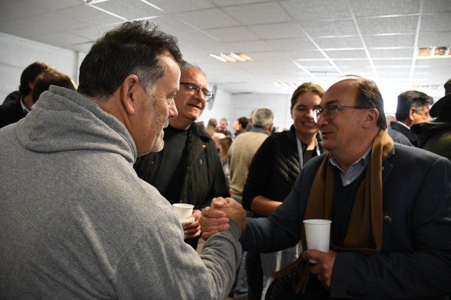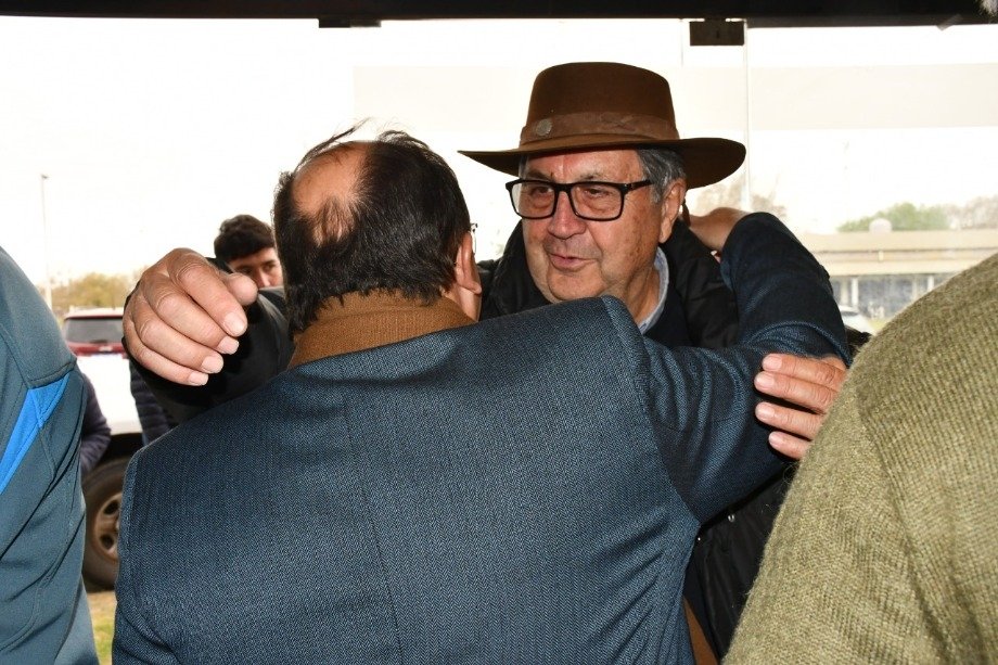 El Intendente José Luis Salomón junto al Secretario de Desarrollo Local Vladimir Wuiovich y al Jefe de Gabinete Ezequiel Tarabú estuvieron en la Sociedad Rural saludando a los organizadores, a los propietarios de las cabañas, a los invitados y a las consignatarias.