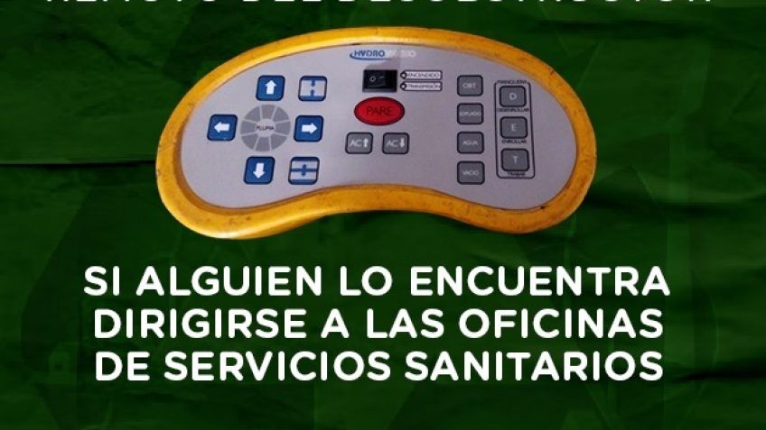 Si alguien lo encuentra dirigirse a las Oficinas de Servicios Sanitarios.