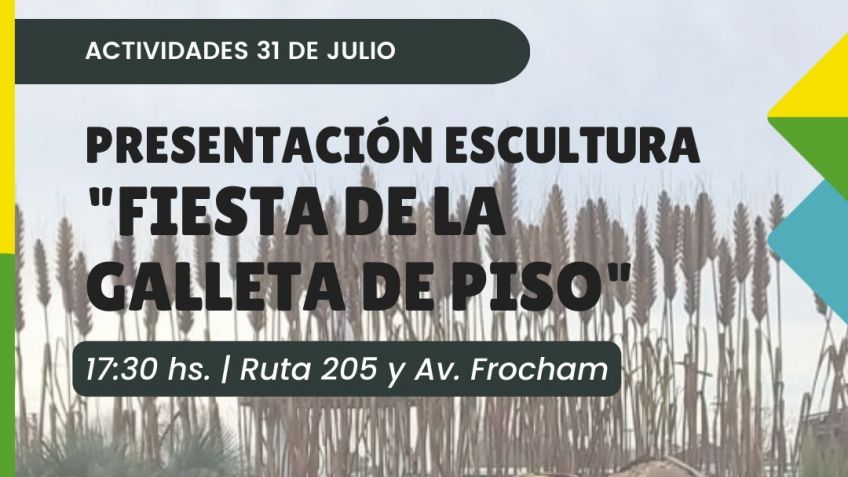El día lunes 31, día del aniversario de nuestra ciudad, se presentará la Escultura de la "Fiesta de la Galleta de Piso" realizada por las artistas Laura Martín y Maia de Lusarreta. Se trata de una obra representativa de la fiesta que se convirtió en el emblema de nuestra ciudad.