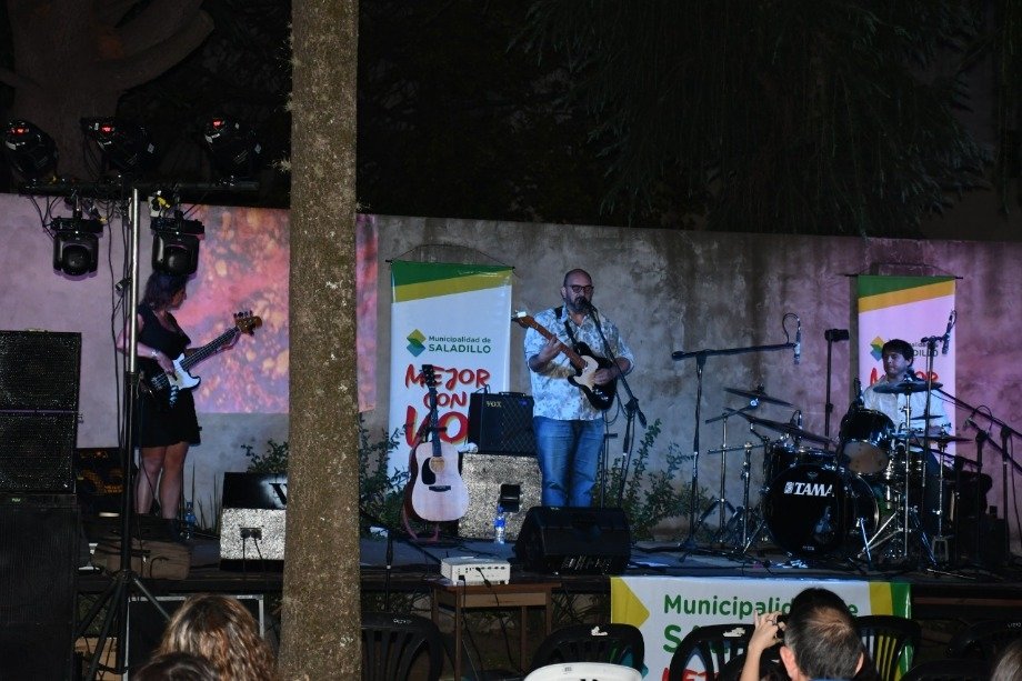 El pasado viernes en el patio trasero del municipio local, se desarrolló una nueva jornada del ciclo denominado Música en el Jardín del Palacio. En este caso con un formato de trío eléctrico del músico saladillense Cristian Redone en guitarra y voz, junto con Raquel Pachamé en bajo eléctrico y Gonzalo Rodríguez en batería. Este concierto se complementó con una escenografía audiovisual con la obra del artista Santiago Espeche.