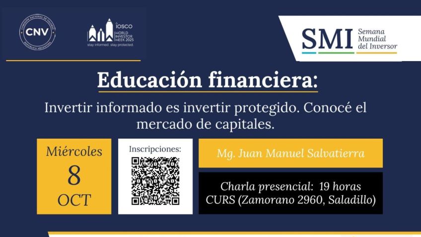 Nos sumamos a la Semana Mundial del Inversor, una iniciativa global impulsada por la OICV-IOSCO y coordinada en Argentina por la CNV (Comisión Nacional de Valores), que busca promover la educación financiera y el conocimiento sobre el Mercado de Capitales como herramienta de ahorro e inversión segura.