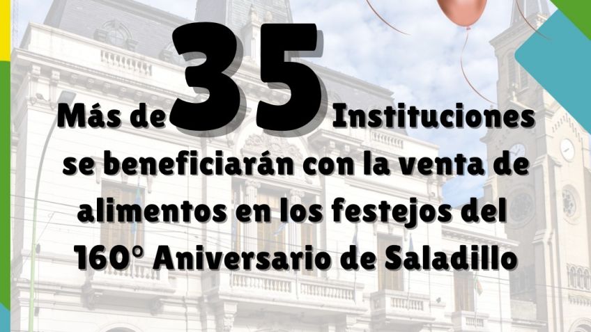 La Municipalidad de Saladillo informa que son más de 35 las Instituciones Inscriptas para la venta de alimentos el próximo domingo 30 de julio, vísperas del 160° Aniversario de nuestra ciudad.