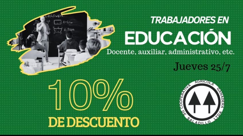 Hoy descuento del 10 por ciento a docentes y auxiliares en el Supermercado COOPERATIVA AGRÍCOLA