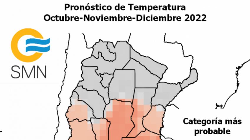 El SMN indicó que para los últimos tres meses de 2022 en la provincia de Buenos Aires así como en parte del "sur del país", a excepción de Tierra del Fuego y parte de Santa Cruz, "este trimestre puede ser más cálido de lo habitual". Por eso, en estos sectores "no se descarta una mayor frecuencia de temperaturas máximas extremas".