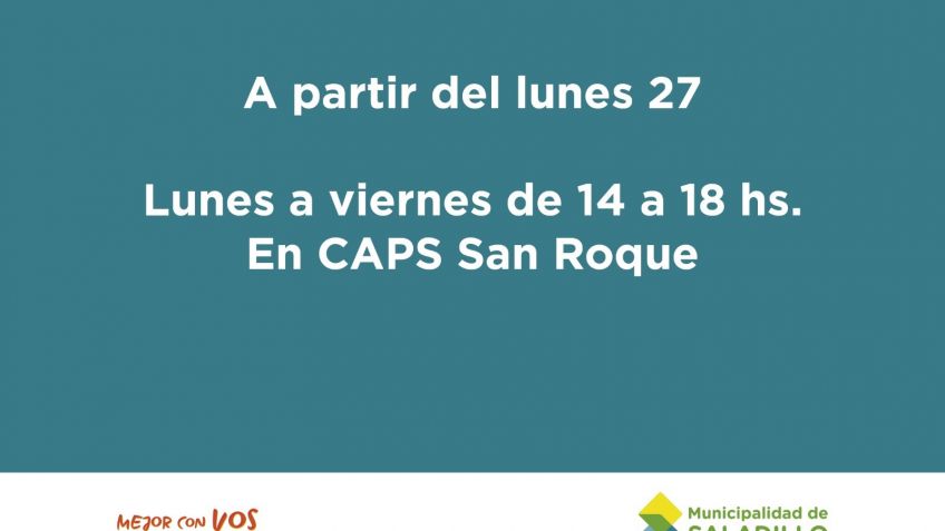 A partir del lunes 27 de marzo, de lunes a viernes de 14 a 18 horas en el CAPS San Roque