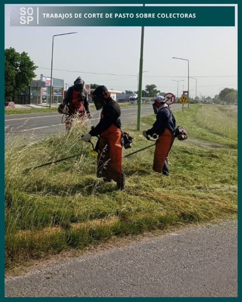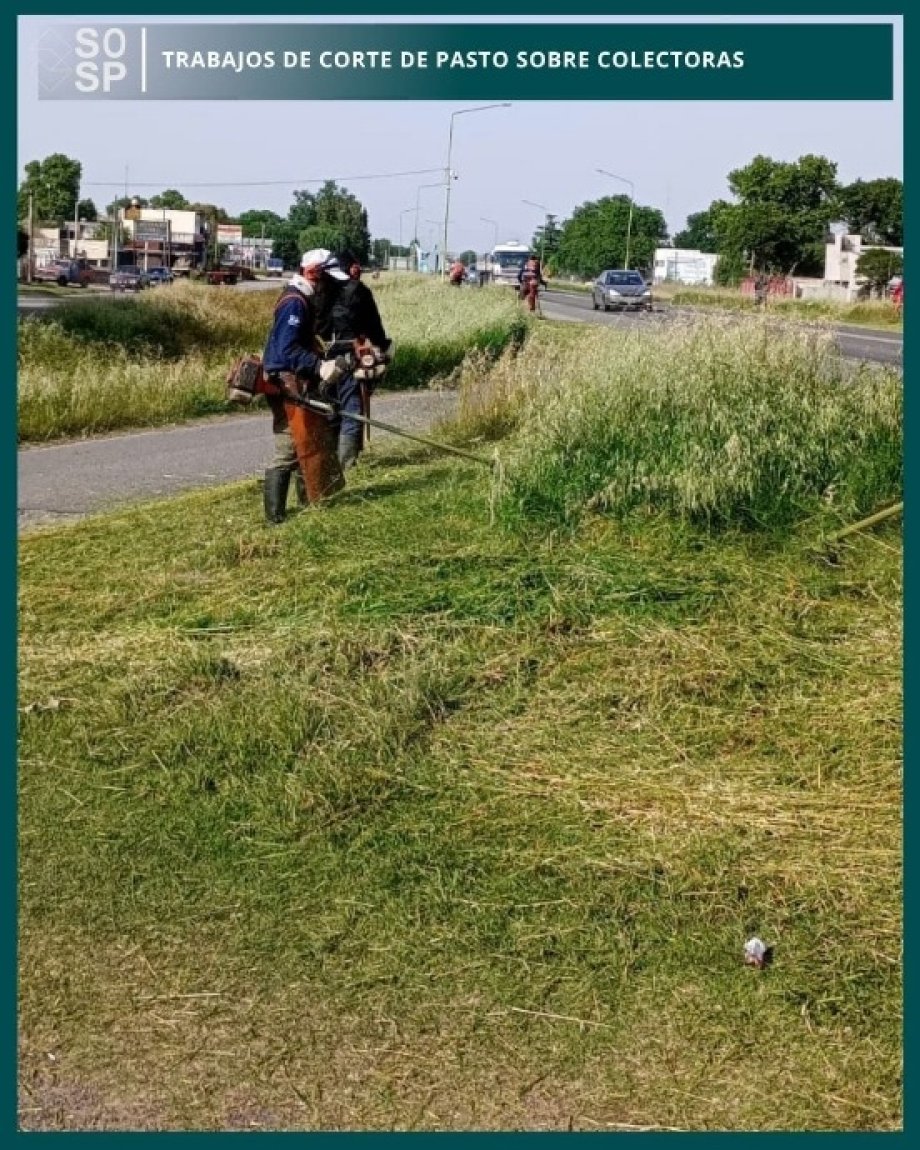 Trabajos de cortes de pasto sobre colectoras