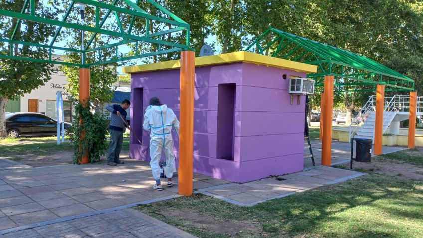 Días pasados la cuadrilla de pintura municipal perteneciente A la Secretaría de Obras y Servicios Públicos realizó trabajos de pintura y mantenimiento en los baños del Parque República de Italia.