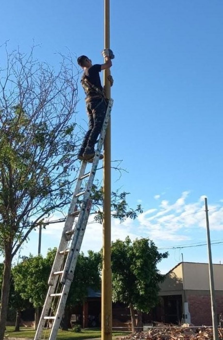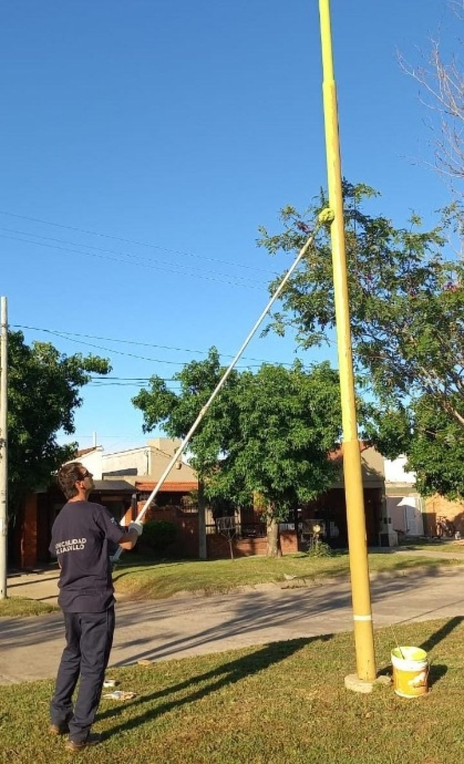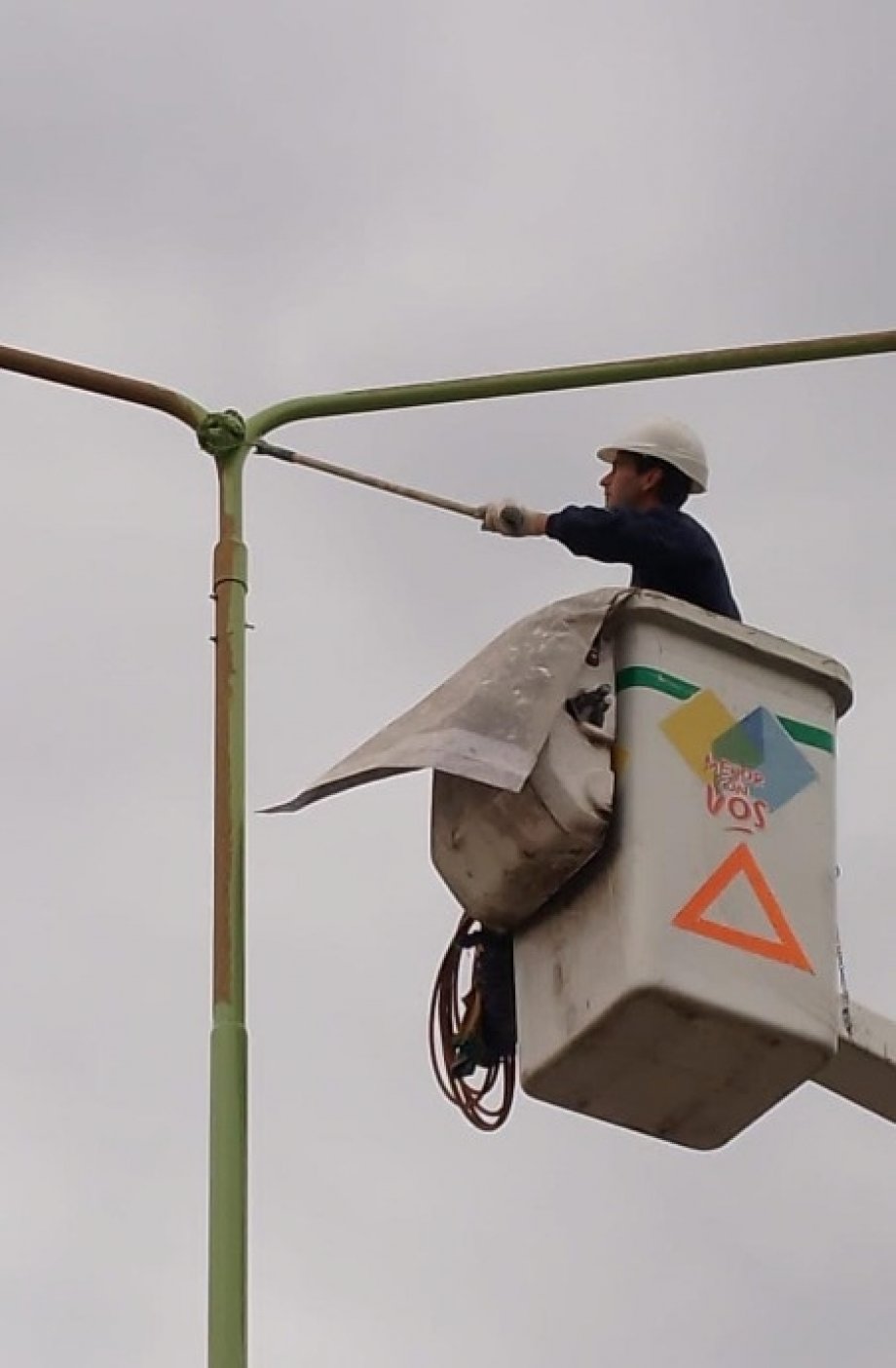 Esta semana la cuadrilla de pintura municipal perteneciente a la Secretaría de Obras y Servicios Públicos, esta semana está llevando a cabo trabajos de preparación, acondicionamiento y pintura sobre columnas metálicas de iluminación pública ubicadas en ramblas.
