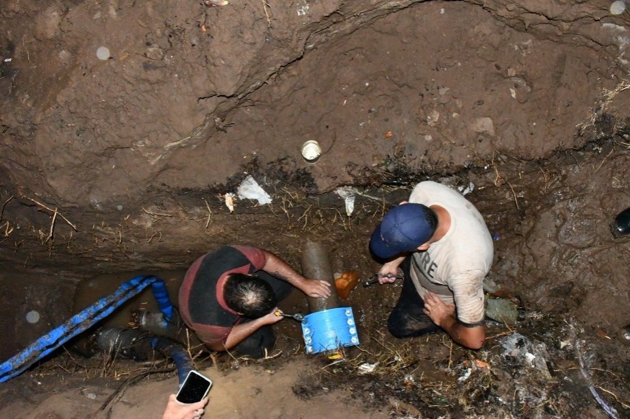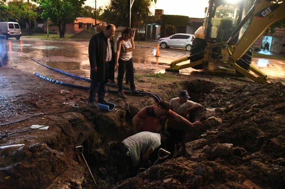 El Intendente Salomón junto con la Subsecretaria de Servicios Sanitarios y Gestión Ambiental Ing. Mariela Incolla presenció el viernes pasado los trabajos de reparación de un caño maestro en la intersección de Avenida Saavedra y Volonte.