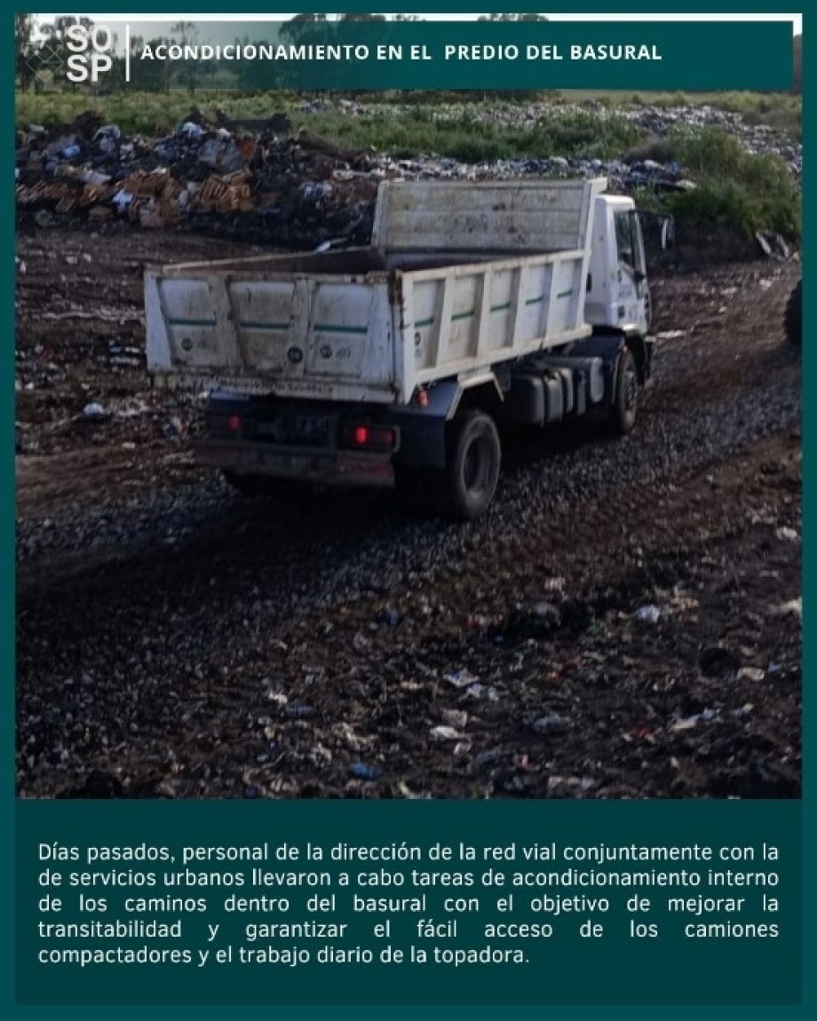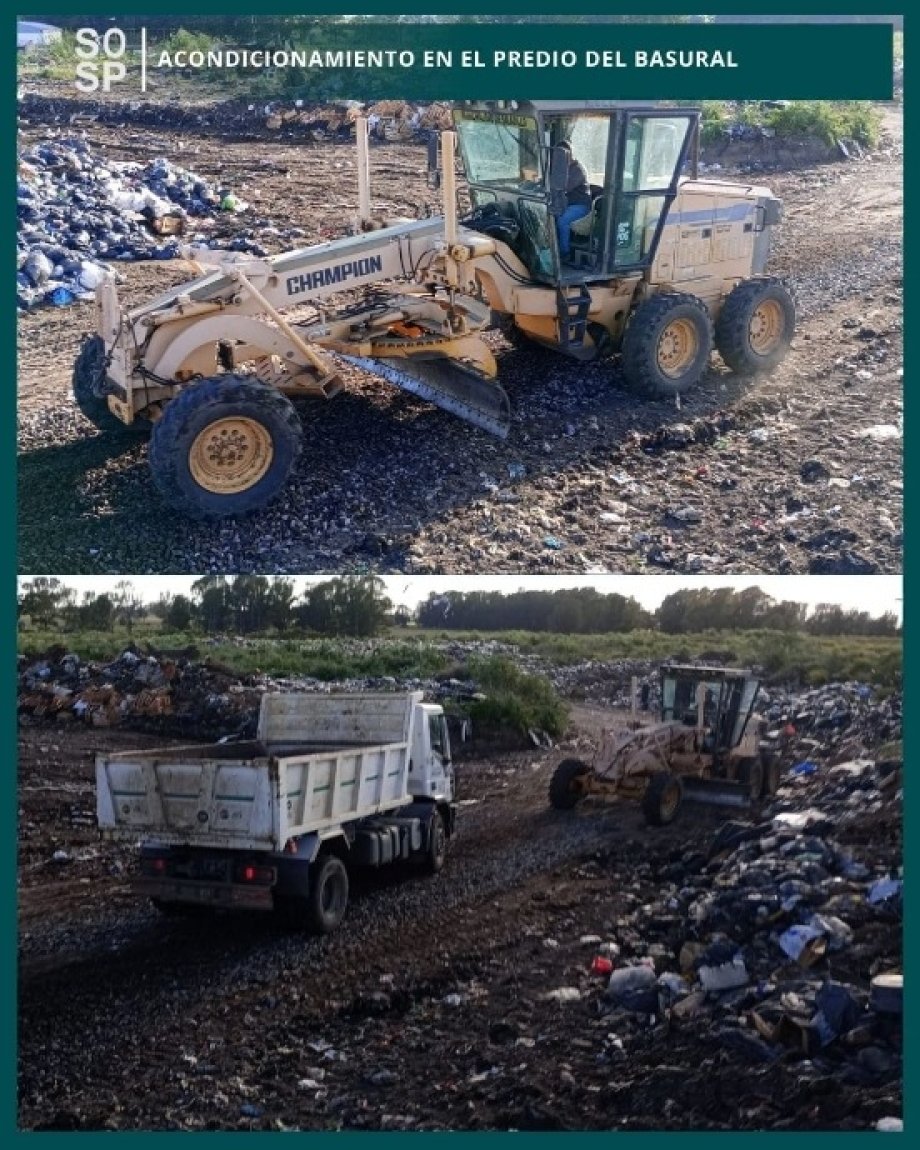 Días pasados, personal de la dirección de la red vial conjuntamente con la de servicios urbanos llevaron a cabo tareas de acondicionamiento interno de los caminos dentro del basural con el objetivo de mejorar la transitabilidad y garantizar el fácil acceso de los camiones compactadores y el trabajo diario de la topadora.
