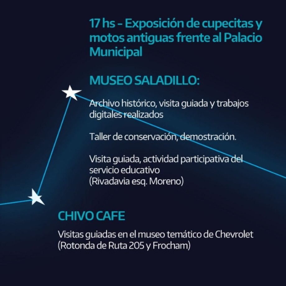 · 17 hs. Exposición de cupecitas y motos antiguas frente al Palacio Municipal.