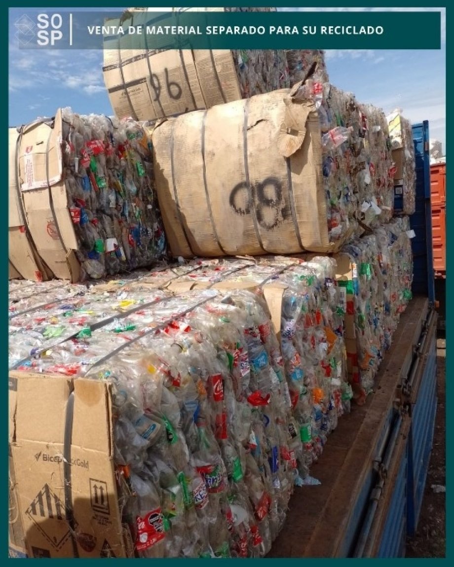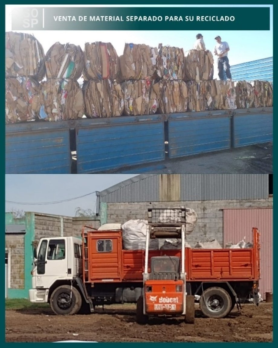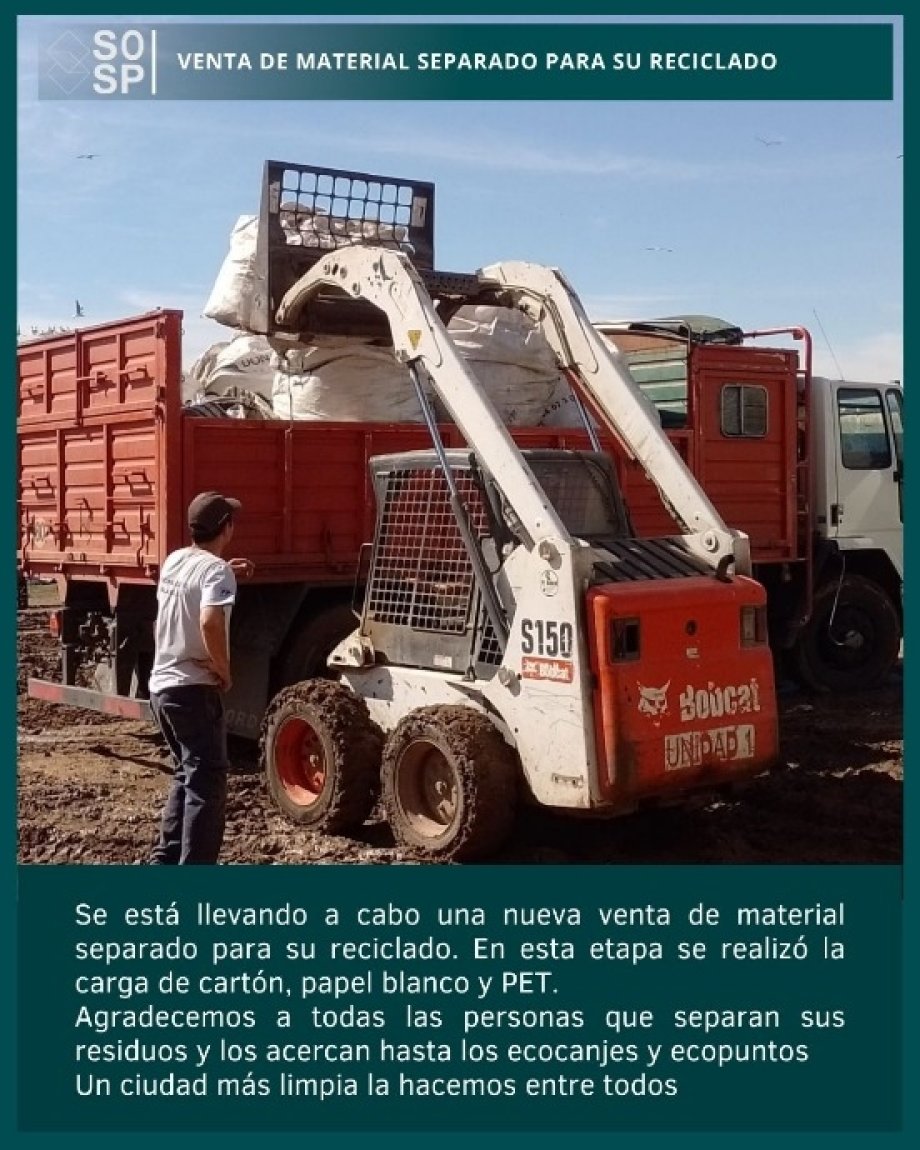 Se está llevando a cabo una nueva venta de material separado para su reciclado. En esta etapa se realizó la carga de cartón, papel blanco y PET.