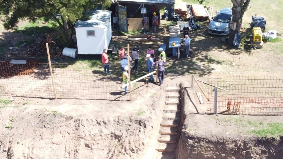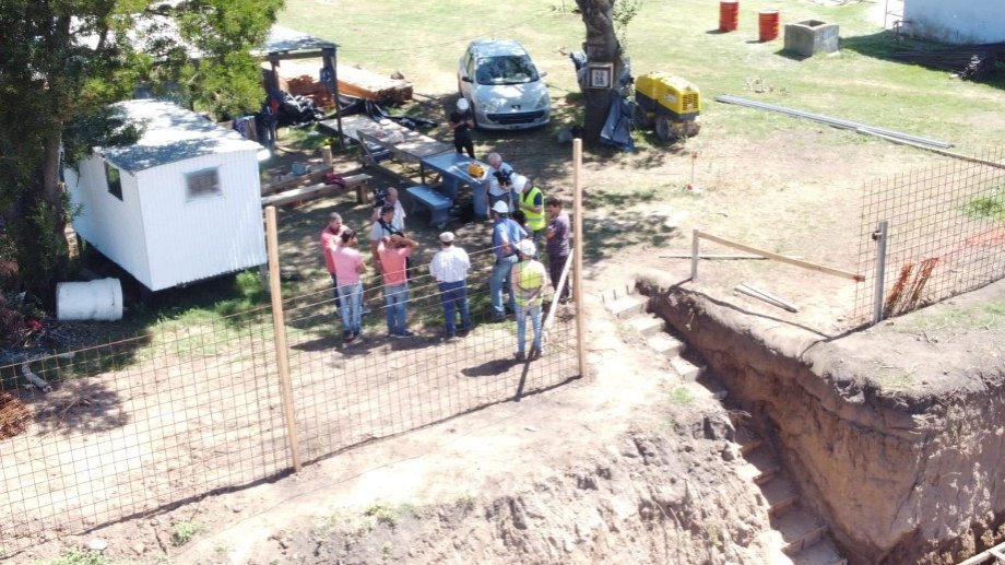 El sector de la obra que visitó el intendente Salomón y su equipo técnico junto a personal profesional de la empresa e inspectores del Enohsa será la cámara de aireación.