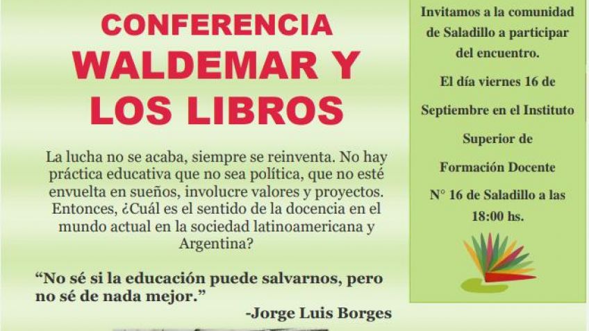 El Instituto de Superior de Formación Docente N°16 y la Municipalidad de Saladillo, invitan a la comunidad a participar del encuentro a cargo de Waldemar Cubilla.